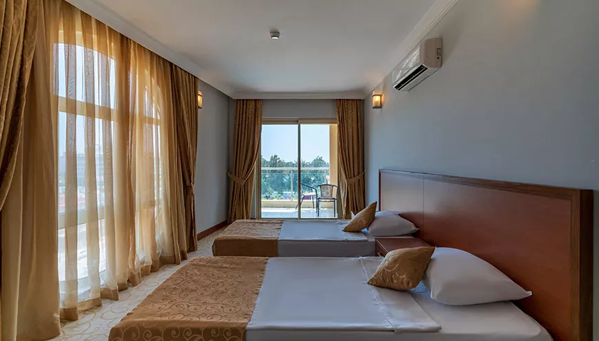Geniş, ferah ve konforlu ortamı ile çocuklu aileler için idealdir. İki odadan oluşan aile odalarımız bir kapı ile bölünmüştür ve bir banyoya sahiptir. 2 kişiden 5 kişiye (3+2 veya 4+1) kadar konaklama kapasitesine sahip olan aile odalarımız 38 m² genişliğe sahiptir. Tamamında balkon veya teras bulunmaktadır.